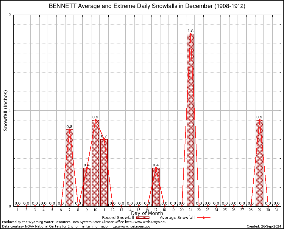 BENNETT (480625) December Average and Extreme Daily Snowfall AMounts (1908-1912) To index page for BENNETT