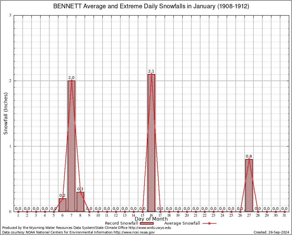 BENNETT (480625) January Average and Extreme Daily Snowfall AMounts (1908-1912) To index page for BENNETT