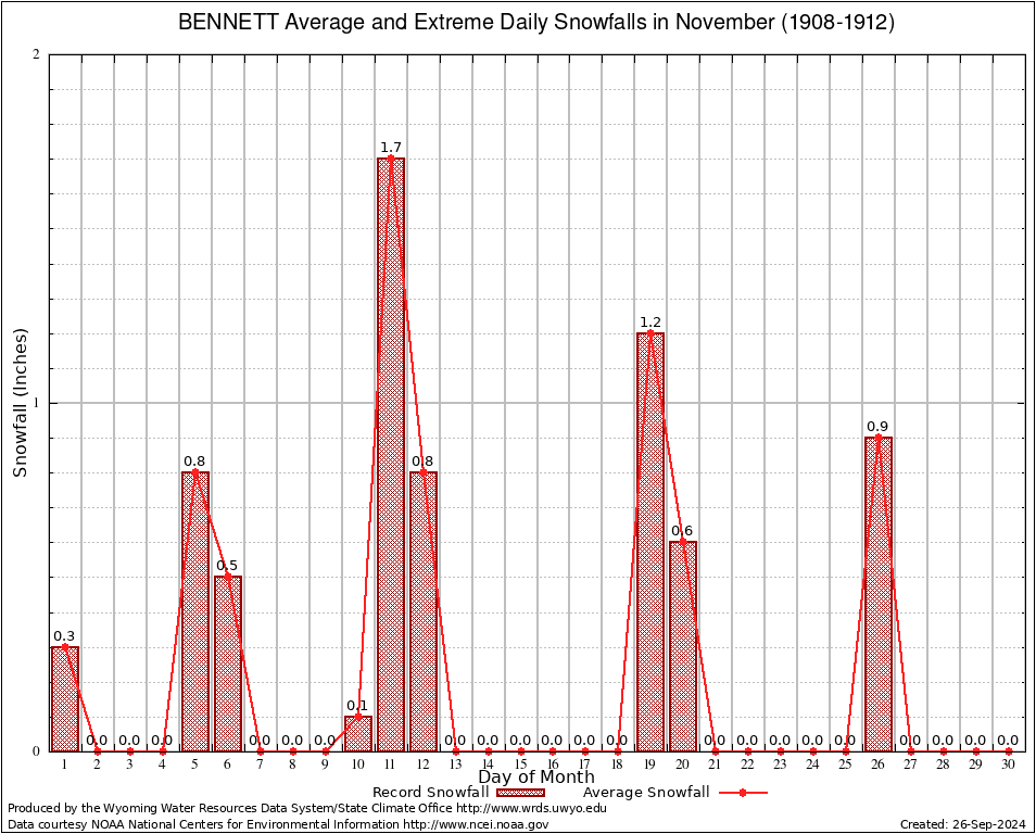 BENNETT (480625) November Average and Extreme Daily Snowfall AMounts (1908-1912) To index page for BENNETT