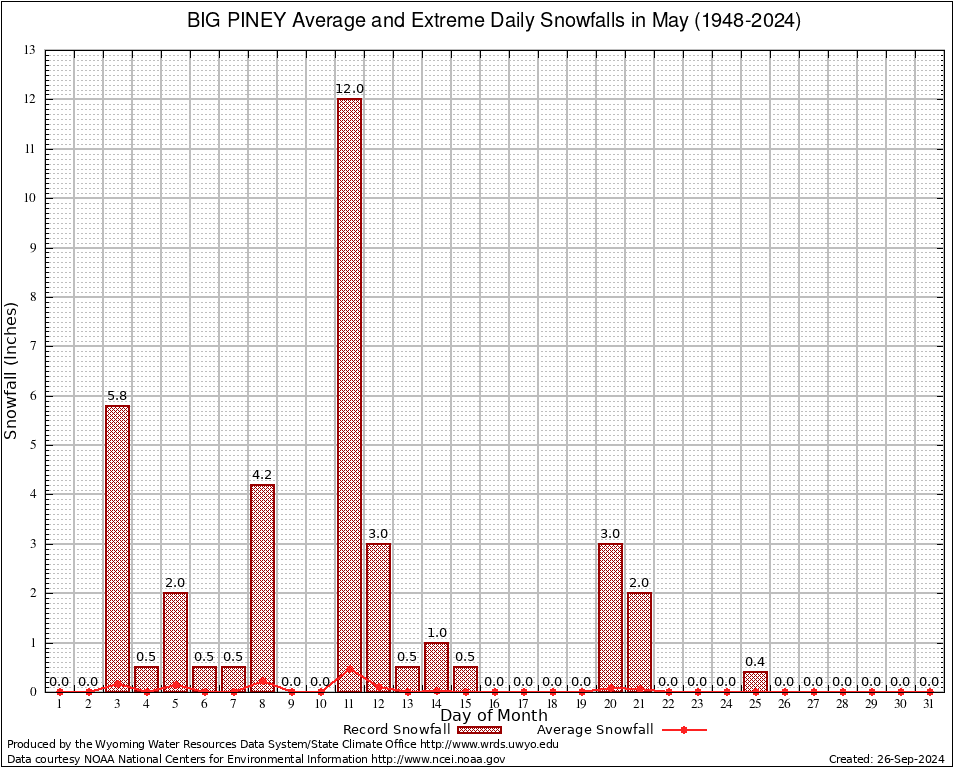 May Average and Extreme Daily Snowfall AMounts (1948-2024)