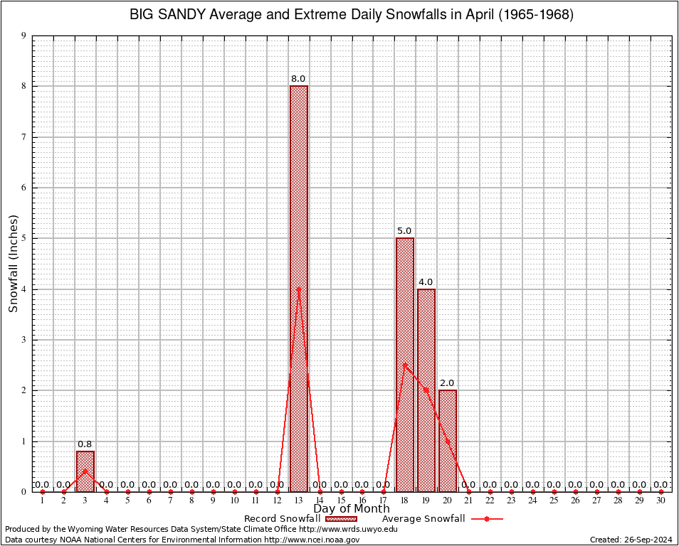 April Average and Extreme Daily Snowfall AMounts (1965-1968)