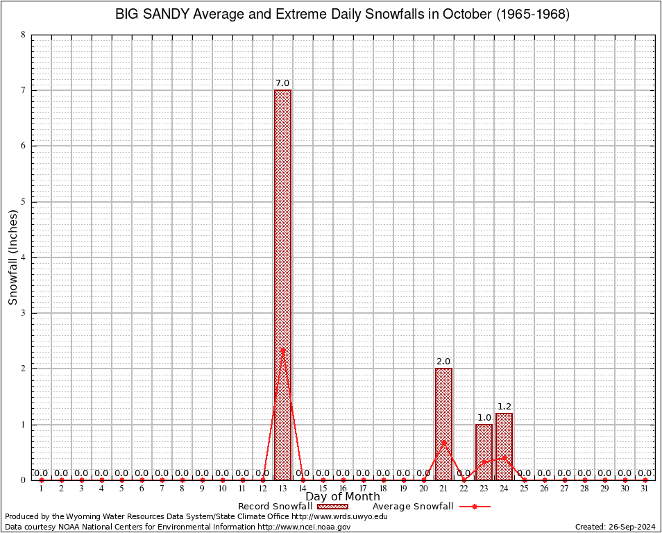 BIG SANDY (480698) October Average and Extreme Daily Snowfall AMounts (1965-1968) To index page for BIG SANDY