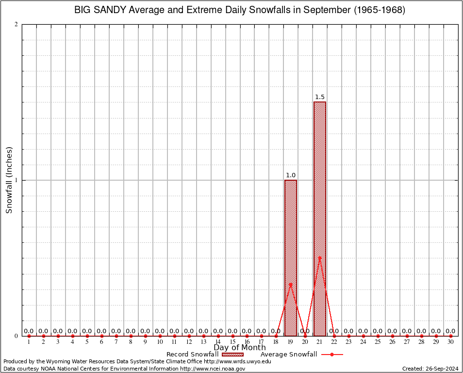 BIG SANDY (480698) September Average and Extreme Daily Snowfall AMounts (1965-1968) To index page for BIG SANDY