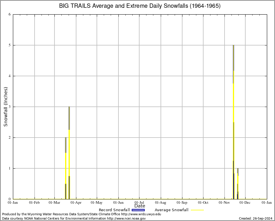 Annual Average and Extreme Daily Snowfall AMounts (1964-1965)