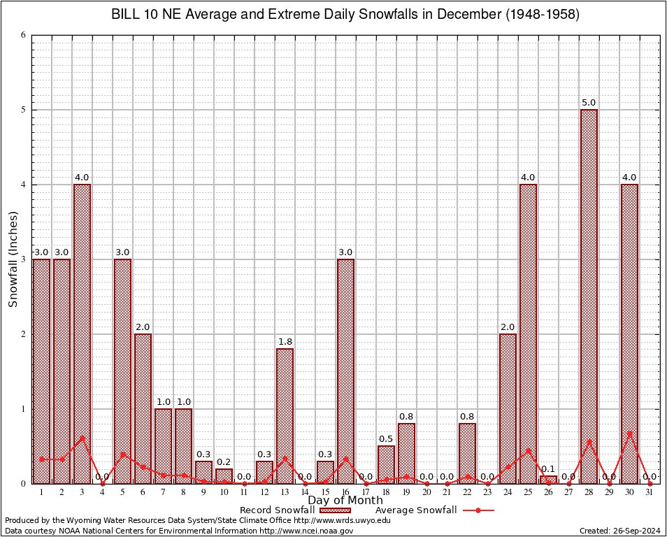 BILL 10 NE (480727) December Average and Extreme Daily Snowfall AMounts (1948-1958) To index page for BILL 10 NE