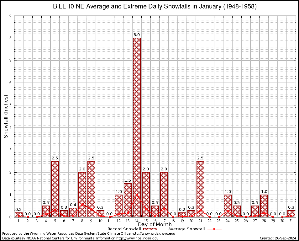 January Average and Extreme Daily Snowfall AMounts (1948-1958)