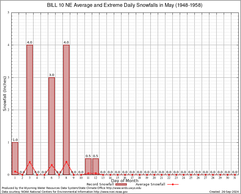 May Average and Extreme Daily Snowfall AMounts (1948-1958)