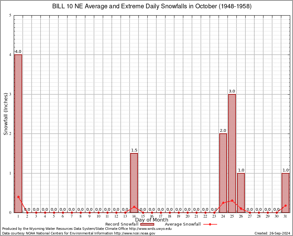 October Average and Extreme Daily Snowfall AMounts (1948-1958)