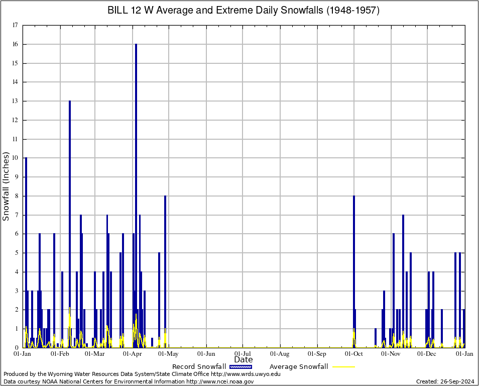 BILL 12 W (480729) Annual Average and Extreme Daily Snowfall AMounts (1948-1957) To index page for BILL 12 W