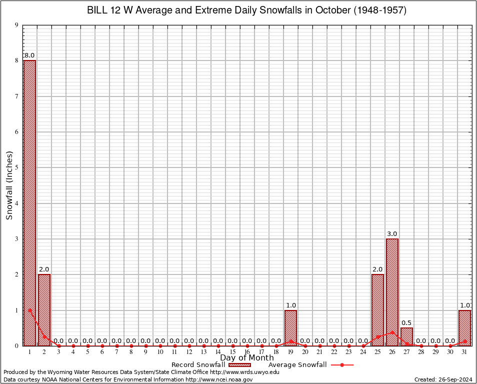 BILL 12 W (480729) October Average and Extreme Daily Snowfall AMounts (1948-1957) To index page for BILL 12 W