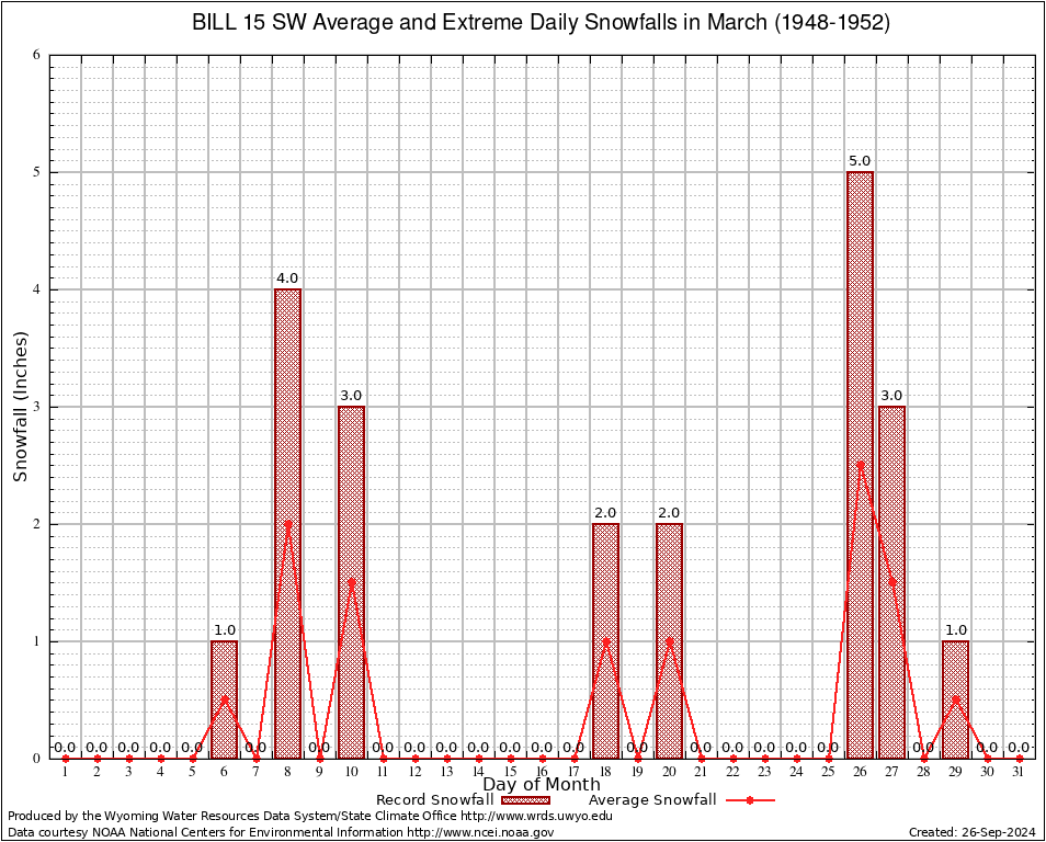 March Average and Extreme Daily Snowfall AMounts (1948-1952)