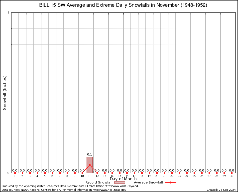 BILL 15 SW (480735) November Average and Extreme Daily Snowfall AMounts (1948-1952) To index page for BILL 15 SW