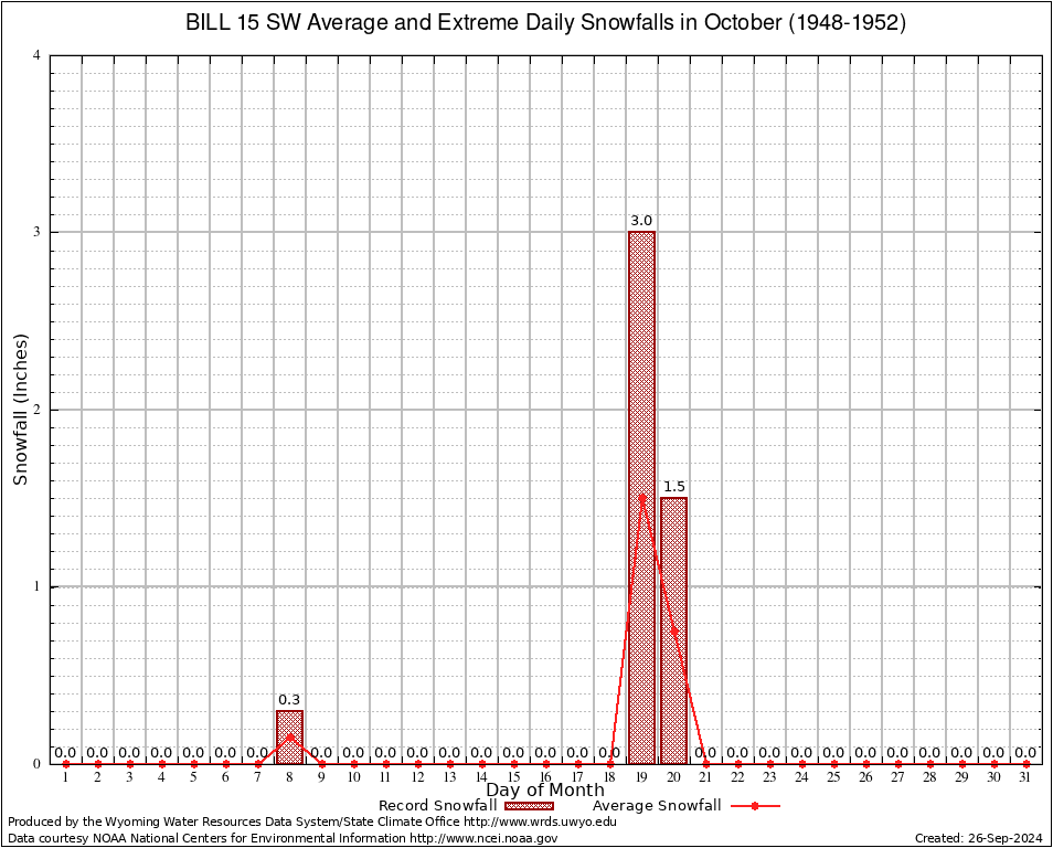 October Average and Extreme Daily Snowfall AMounts (1948-1952)