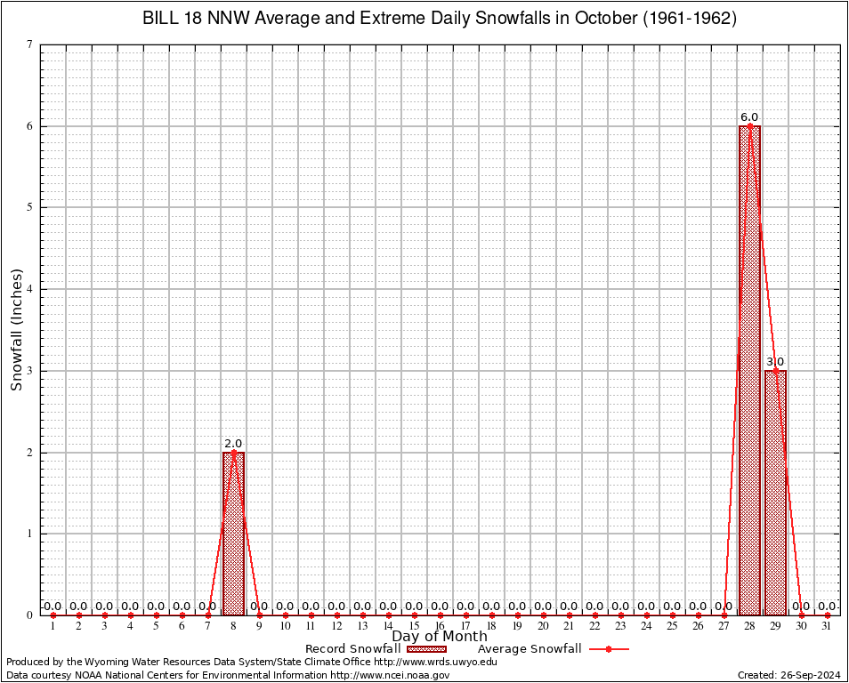 October Average and Extreme Daily Snowfall AMounts (1961-1962)