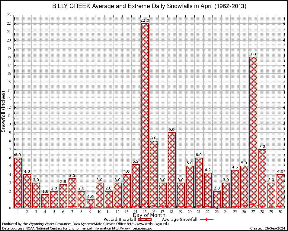 April Average and Extreme Daily Snowfall AMounts (1962-2013)