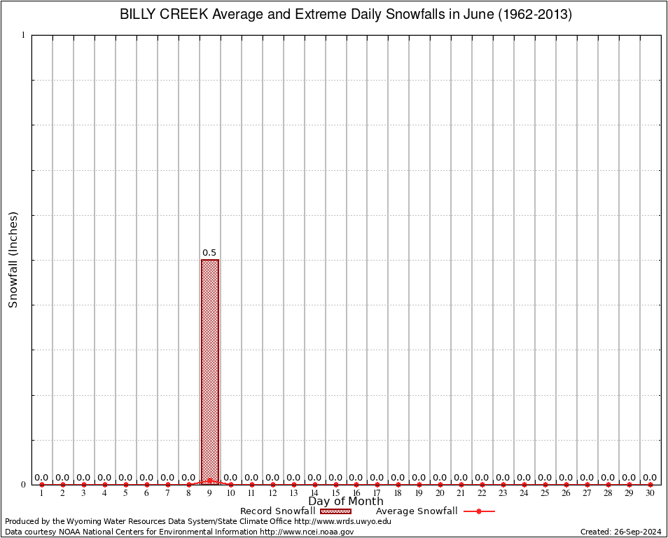 June Average and Extreme Daily Snowfall AMounts (1962-2013)