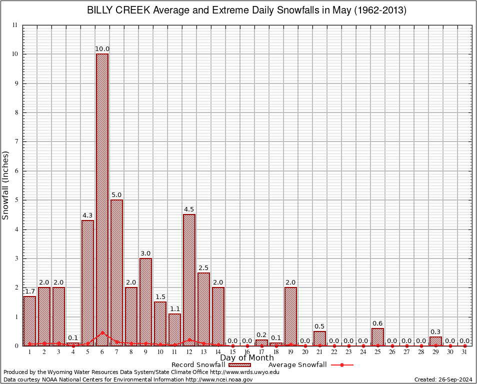May Average and Extreme Daily Snowfall AMounts (1962-2013)