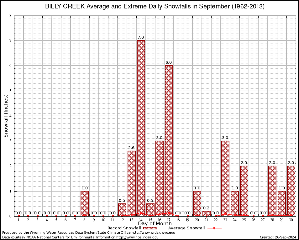September Average and Extreme Daily Snowfall AMounts (1962-2013)