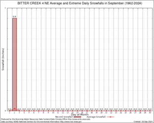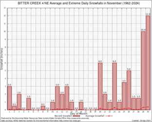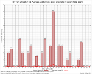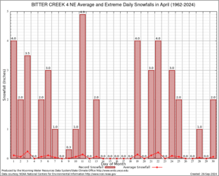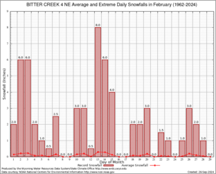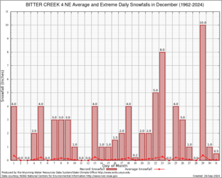 BITTER CREEK 4 NE (480761) Record Extreme and Average Daily Snowfall (1962-2024) See Here for Other Stations