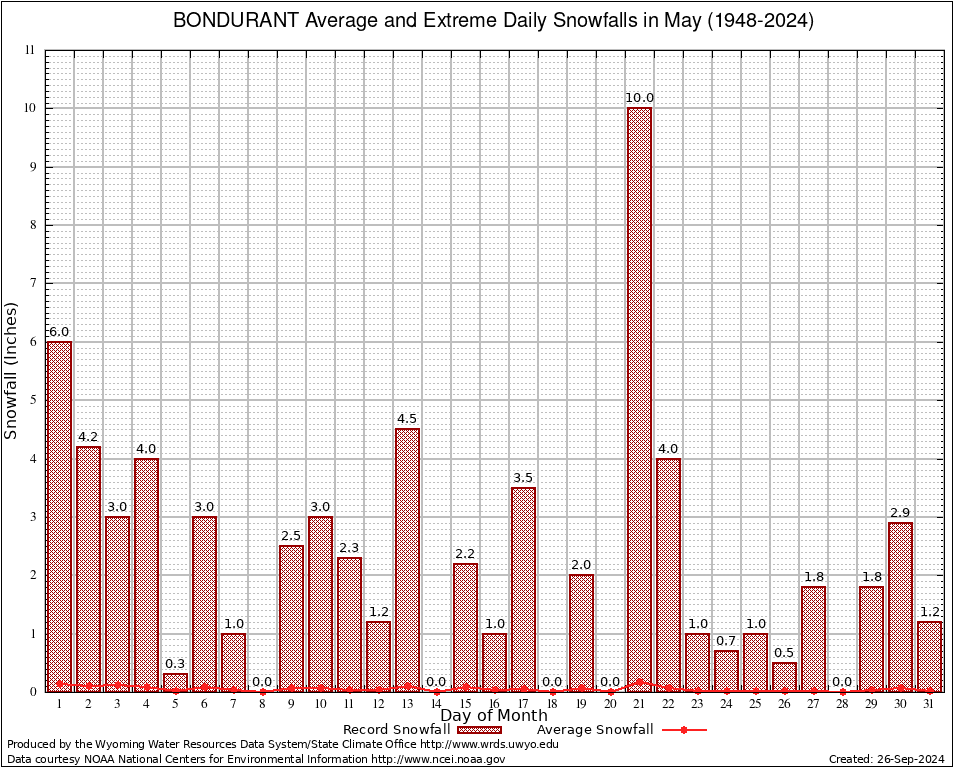 May Average and Extreme Daily Snowfall AMounts (1948-2024)