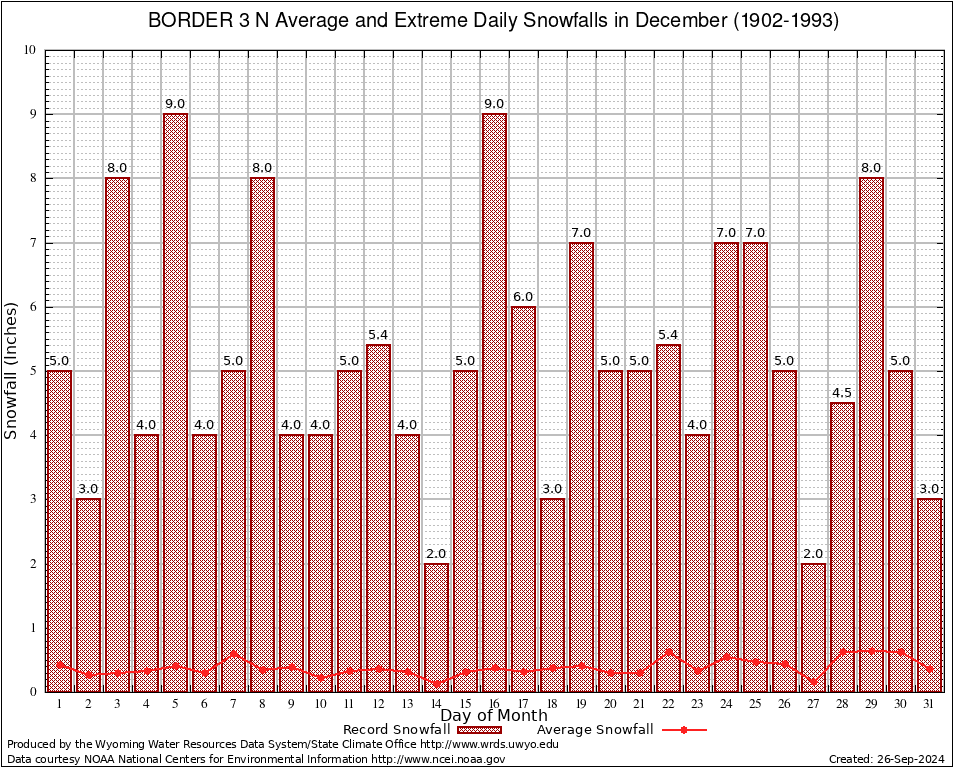BORDER 3 N (480915) December Average and Extreme Daily Snowfall AMounts (1902-1993) To index page for BORDER 3 N