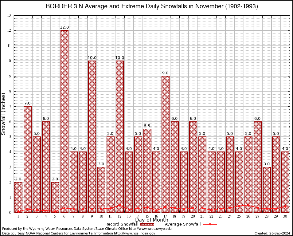 BORDER 3 N (480915) November Average and Extreme Daily Snowfall AMounts (1902-1993) To index page for BORDER 3 N