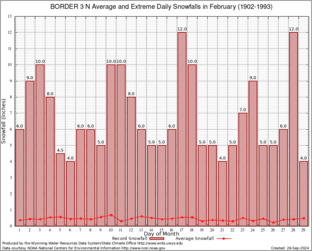 Record Extreme and Average Daily Snowfall (1902-1993)