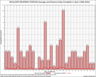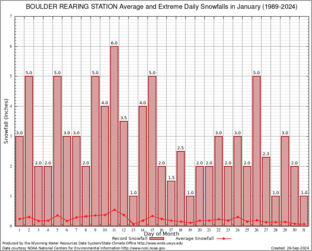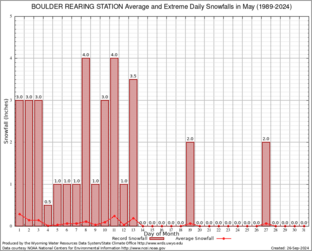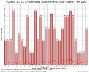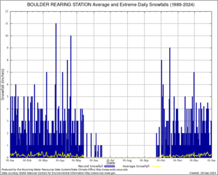 BOULDER REARING STATION (480951) Record Extreme and Average Daily Snowfall (1989-2024) See Here for Other Stations
