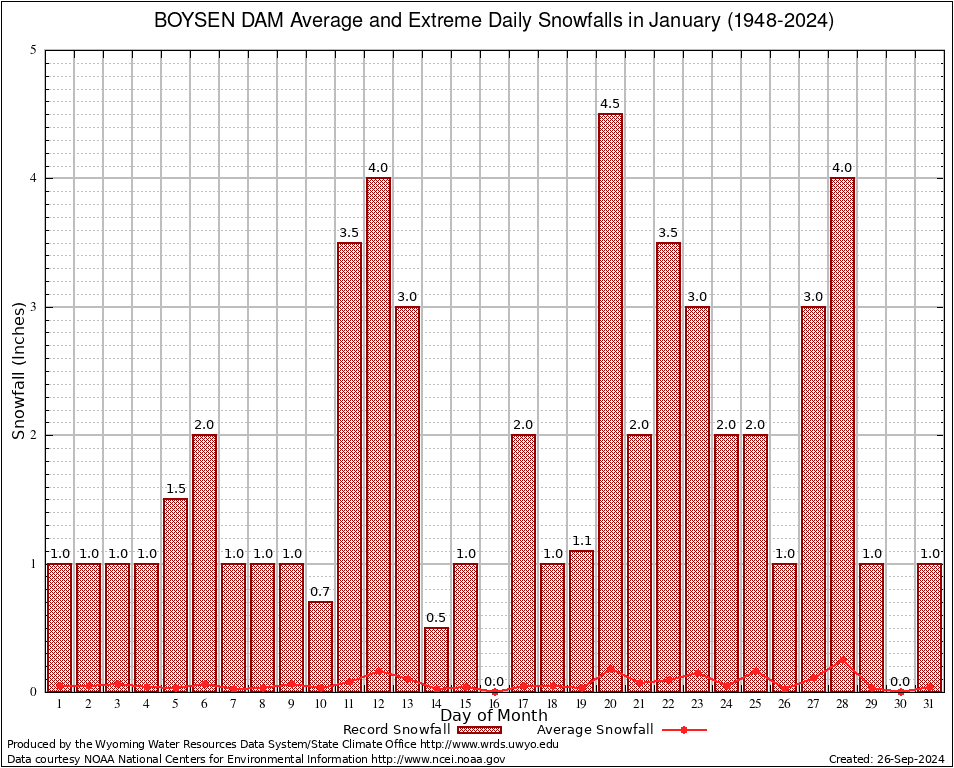 January Average and Extreme Daily Snowfall AMounts (1948-2024)