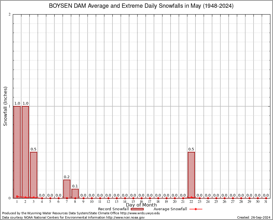 May Average and Extreme Daily Snowfall AMounts (1948-2024)