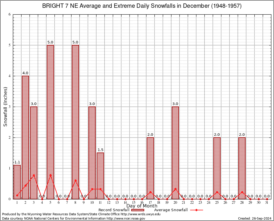 December Average and Extreme Daily Snowfall AMounts (1948-1957)
