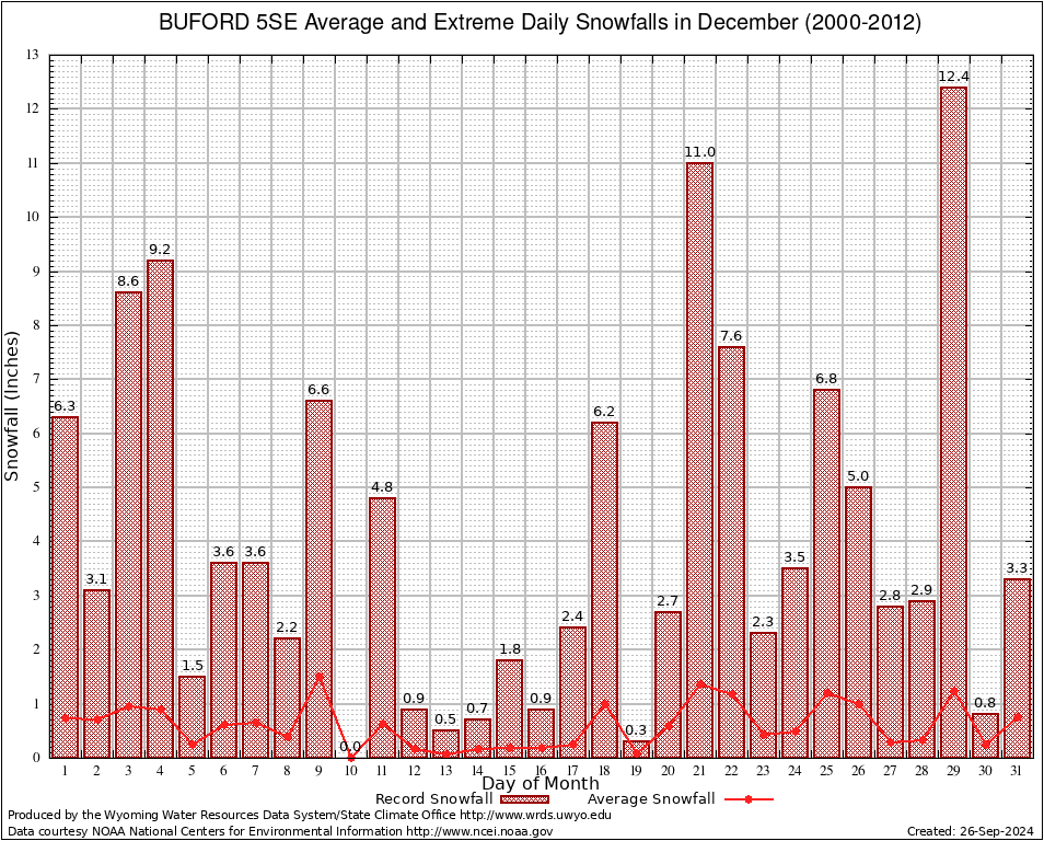 BUFORD 5SE (481139) December Average and Extreme Daily Snowfall AMounts (2000-2012) To index page for BUFORD 5SE