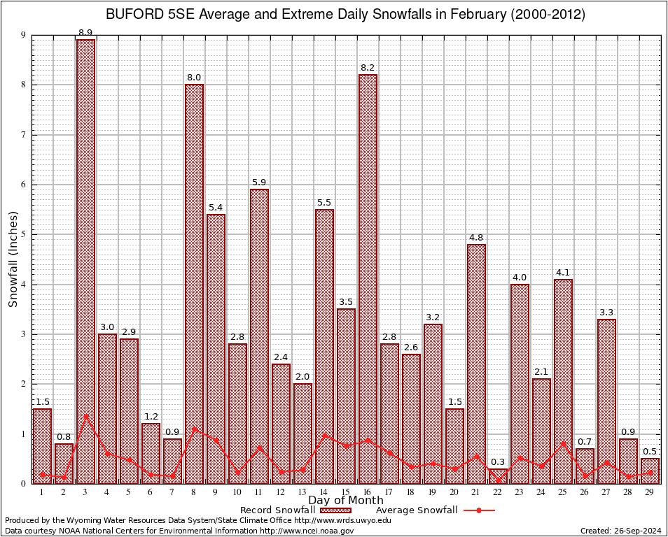 BUFORD 5SE (481139) February Average and Extreme Daily Snowfall AMounts (2000-2012) To index page for BUFORD 5SE