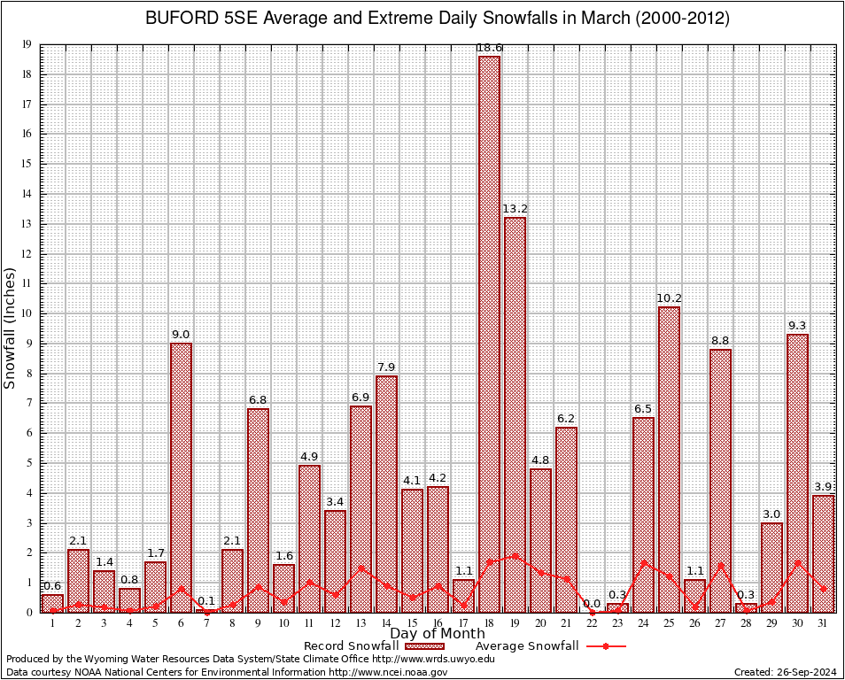 March Average and Extreme Daily Snowfall AMounts (2000-2012)