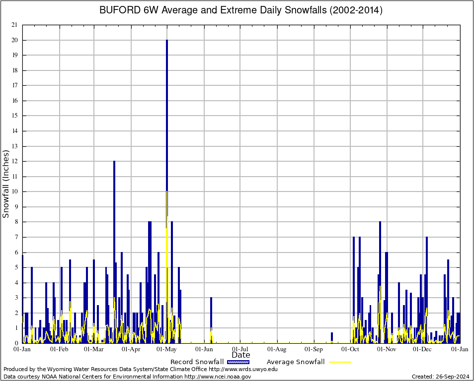 BUFORD 6W (481141) Annual Average and Extreme Daily Snowfall AMounts (2002-2014) To index page for BUFORD 6W