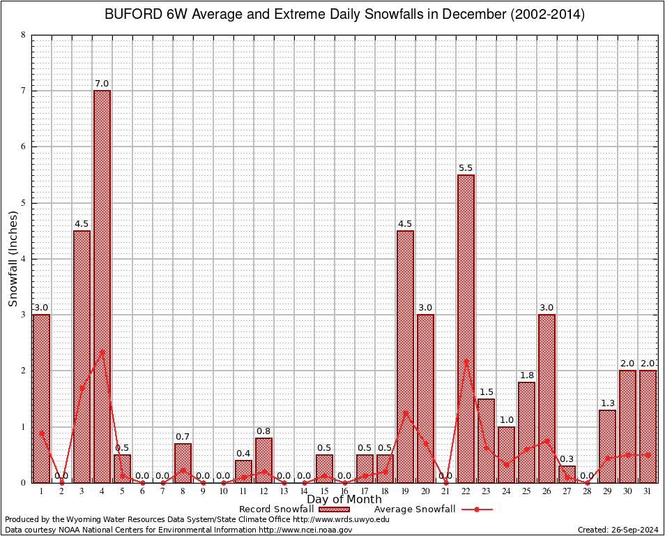 BUFORD 6W (481141) December Average and Extreme Daily Snowfall AMounts (2002-2014) To index page for BUFORD 6W