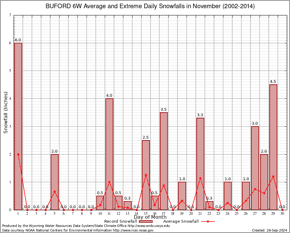 BUFORD 6W (481141) November Average and Extreme Daily Snowfall AMounts (2002-2014) To index page for BUFORD 6W