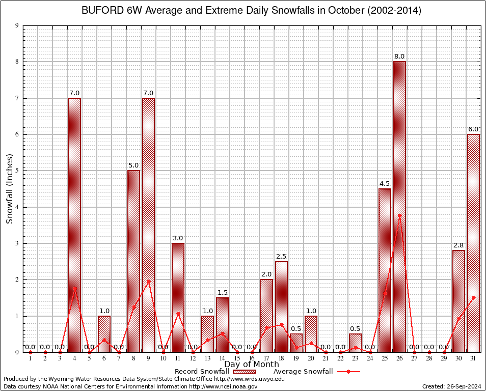 BUFORD 6W (481141) October Average and Extreme Daily Snowfall AMounts (2002-2014) To index page for BUFORD 6W