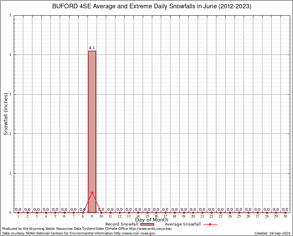 June Average and Extreme Daily Snowfall AMounts (2012-2023)