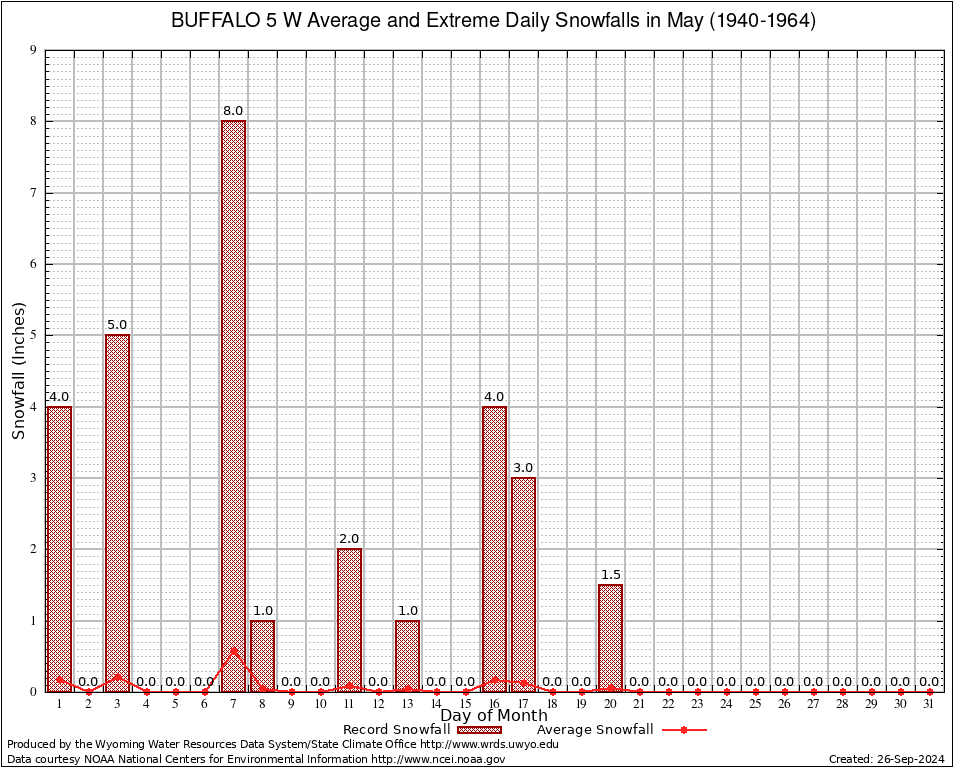 May Average and Extreme Daily Snowfall AMounts (1940-1964)