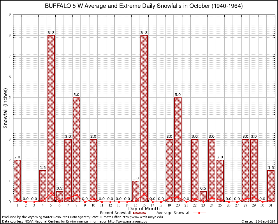 October Average and Extreme Daily Snowfall AMounts (1940-1964)