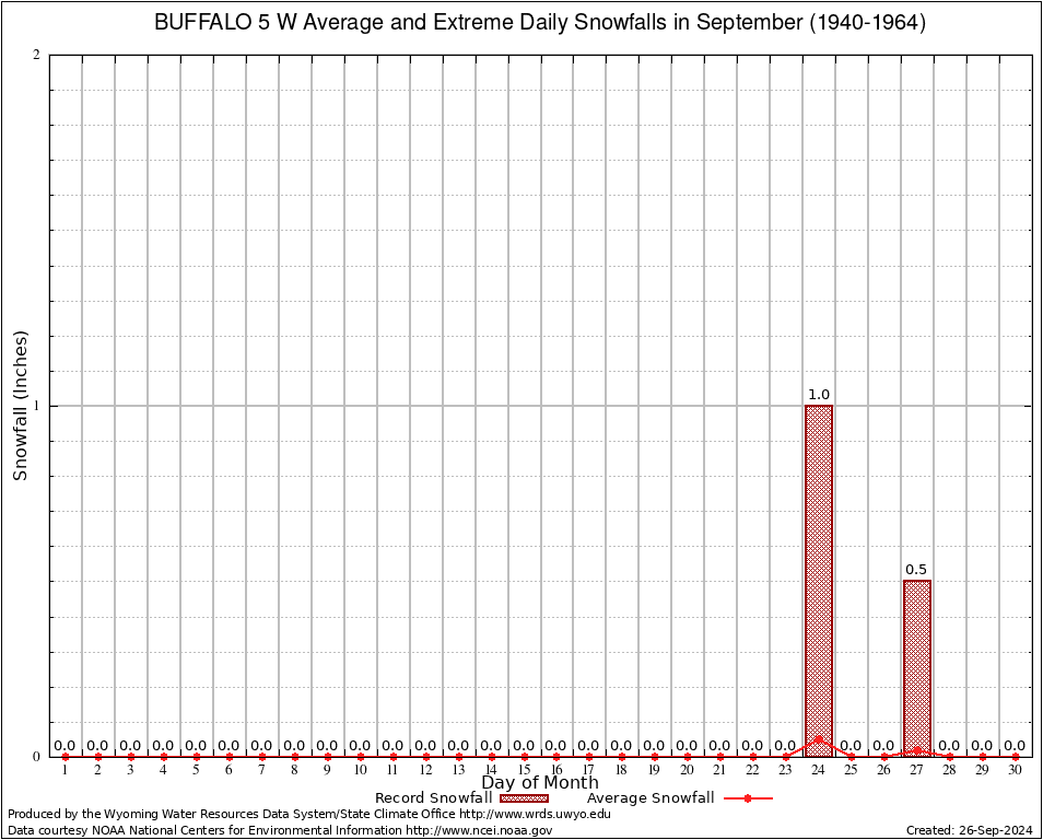 September Average and Extreme Daily Snowfall AMounts (1940-1964)