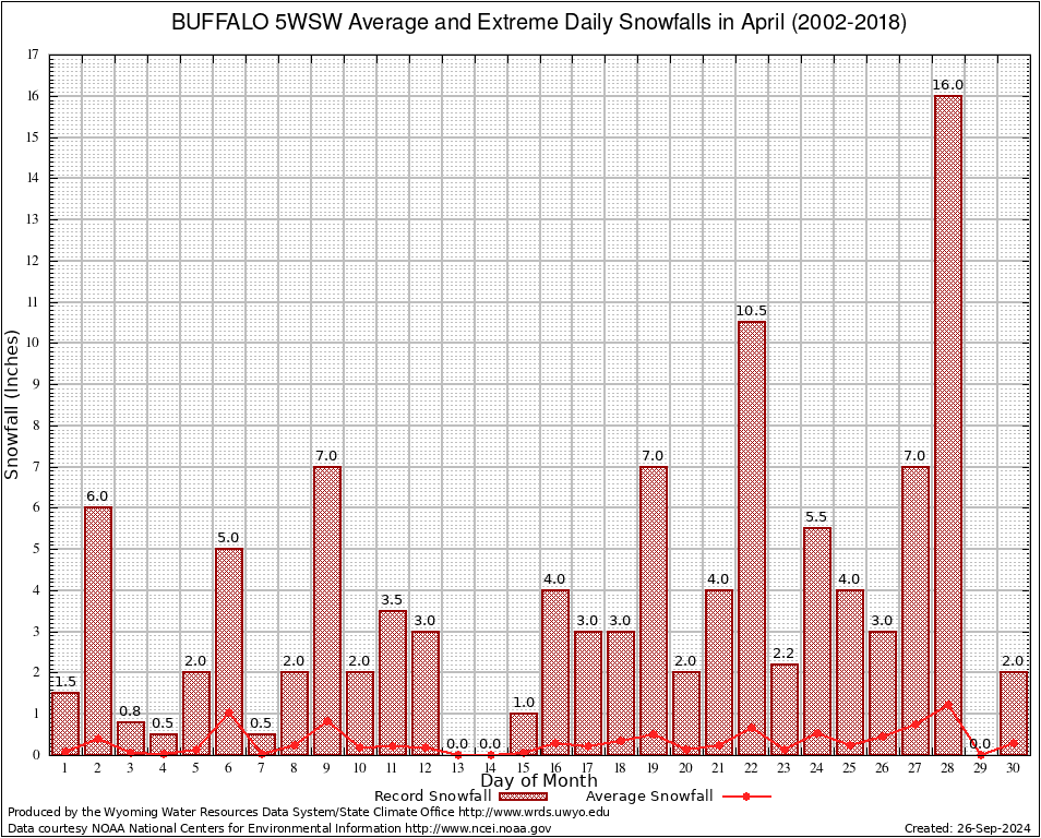 April Average and Extreme Daily Snowfall AMounts (2002-2018)