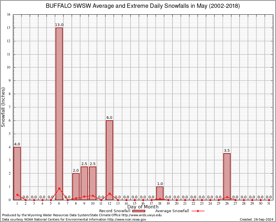 May Average and Extreme Daily Snowfall AMounts (2002-2018)