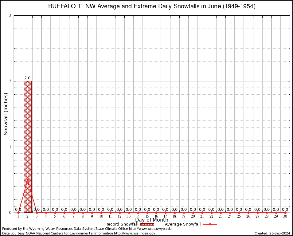 June Average and Extreme Daily Snowfall AMounts (1949-1954)
