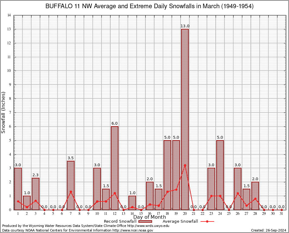 March Average and Extreme Daily Snowfall AMounts (1949-1954)