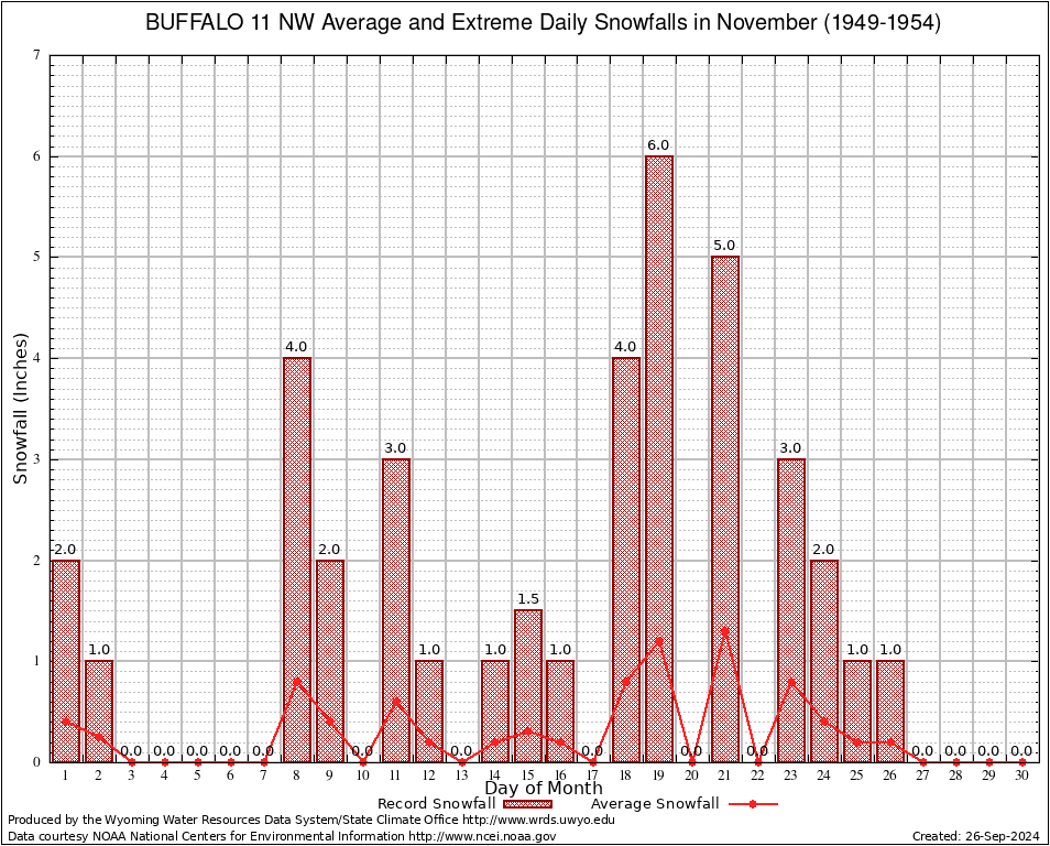 November Average and Extreme Daily Snowfall AMounts (1949-1954)