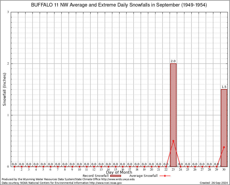 September Average and Extreme Daily Snowfall AMounts (1949-1954)