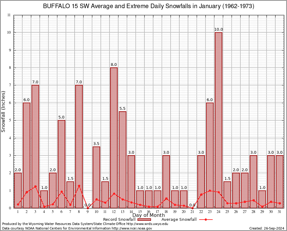 January Average and Extreme Daily Snowfall AMounts (1962-1973)