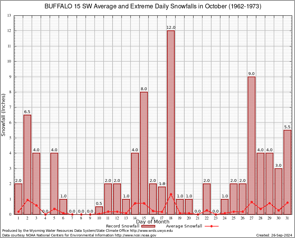 October Average and Extreme Daily Snowfall AMounts (1962-1973)